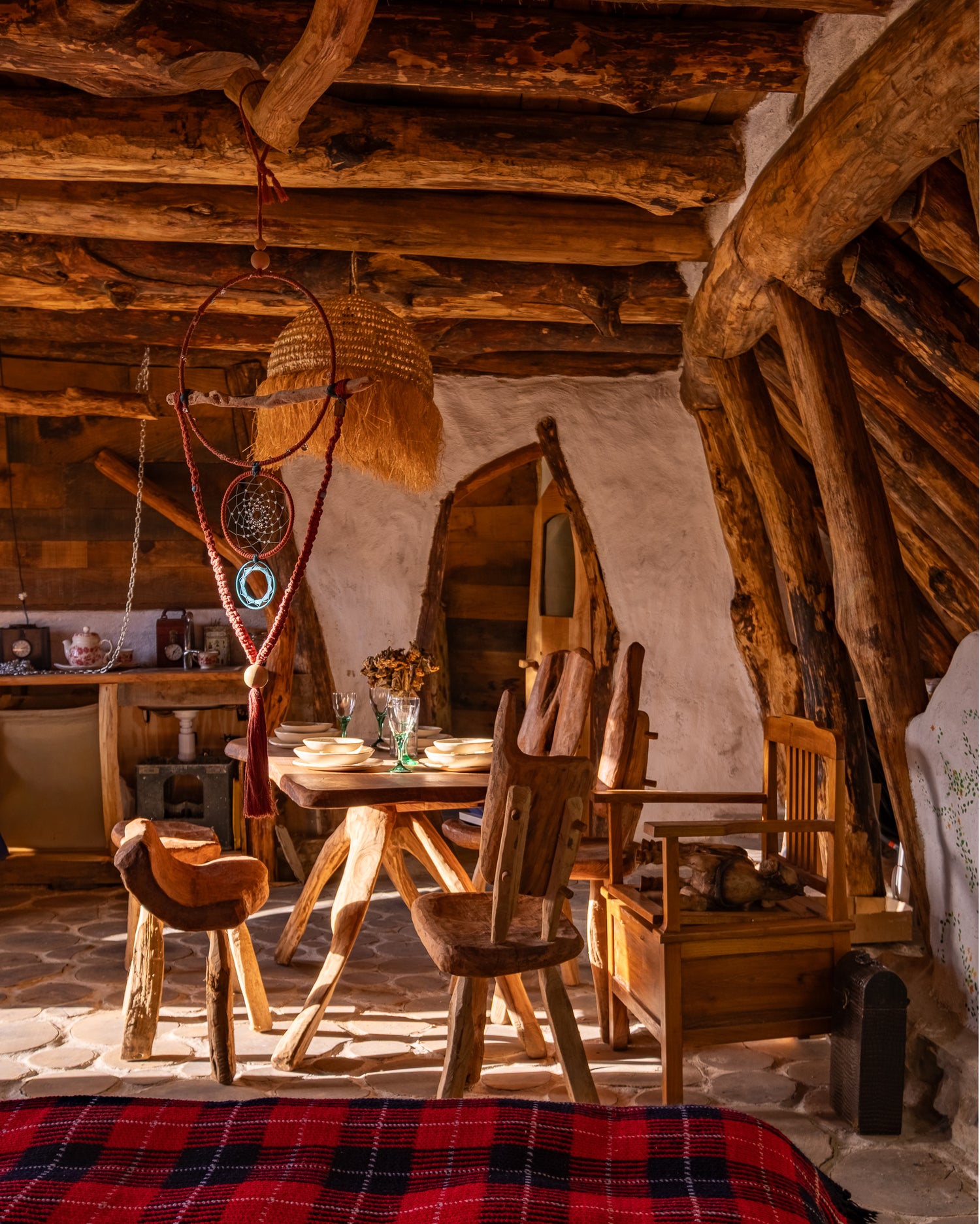 No son alojamientos, son hogares. Pequeños espacios nacidos de la tierra, moldeados a mano con madera, piedra, cal, barro, paja, lana de oveja a un ritmo lento. Aquí las formas irregulares dan personalidad a cada elemento, desde las paredes a los muebles, pasando por los cubiertos, o las ventanas y puertas. Cada curva cuenta una historia, cada imperfección tiene alma. Inspiradas en los hogares de los hobbits, siendo fiel al espíritu de