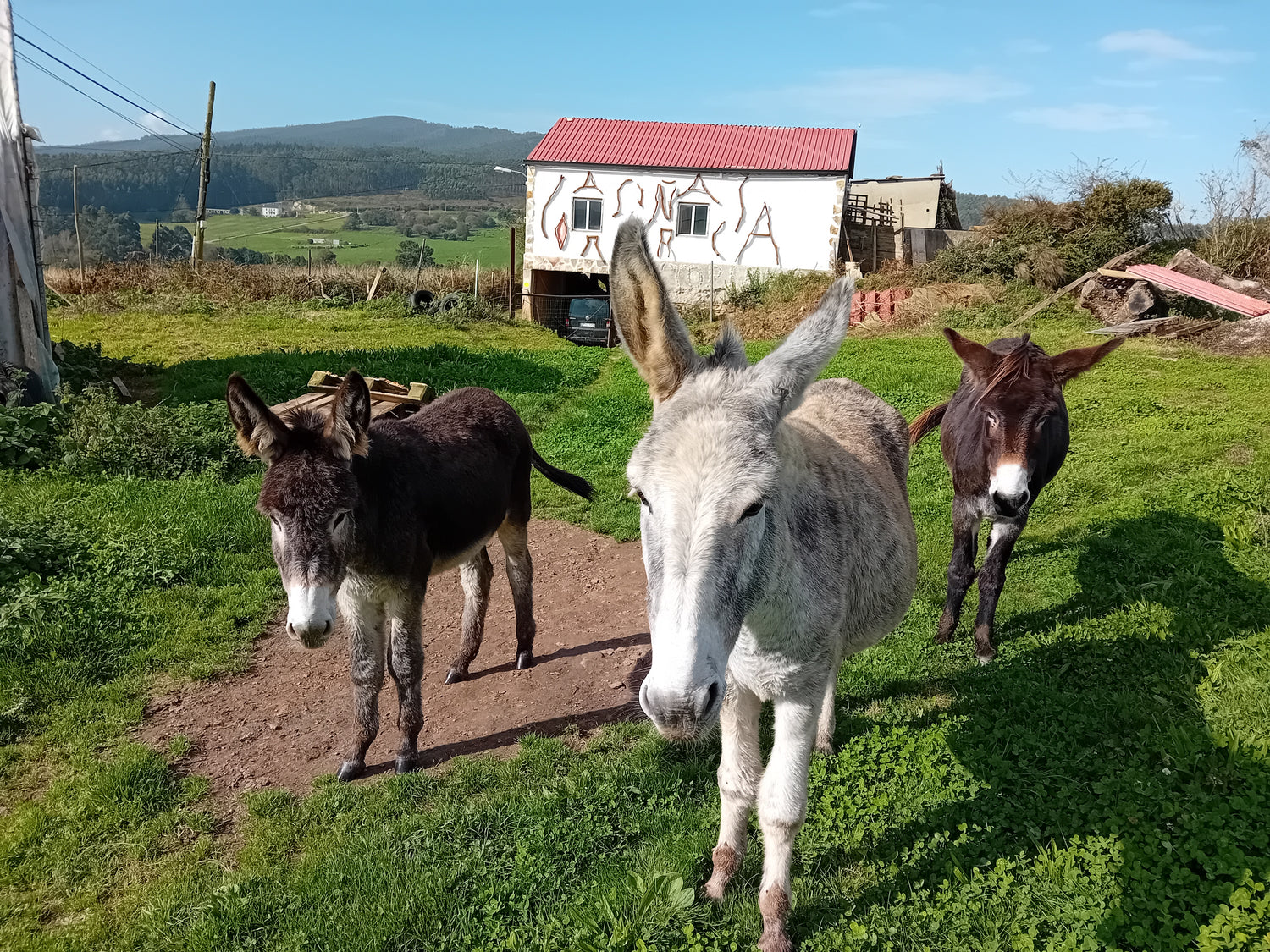 Aquí residen 3 burritos, 5 patitos, 3 gatitos, 1 perro y 8 gallinas. Los animales pequeños, voladores o terrestres, son importantes en el lugar. Por ello, la hierba nunca se corta a ras ni se utilizan robots. Sin flores no hay vida, ni alimento, por lo que la vegetación es exuberante. Los pájaros vuelan y cantan, han regresado luciérnagas en docenas, y abundan las mariposas. Pronto, las abejas también encontrarán su hogar en Casiñas a Comarca.